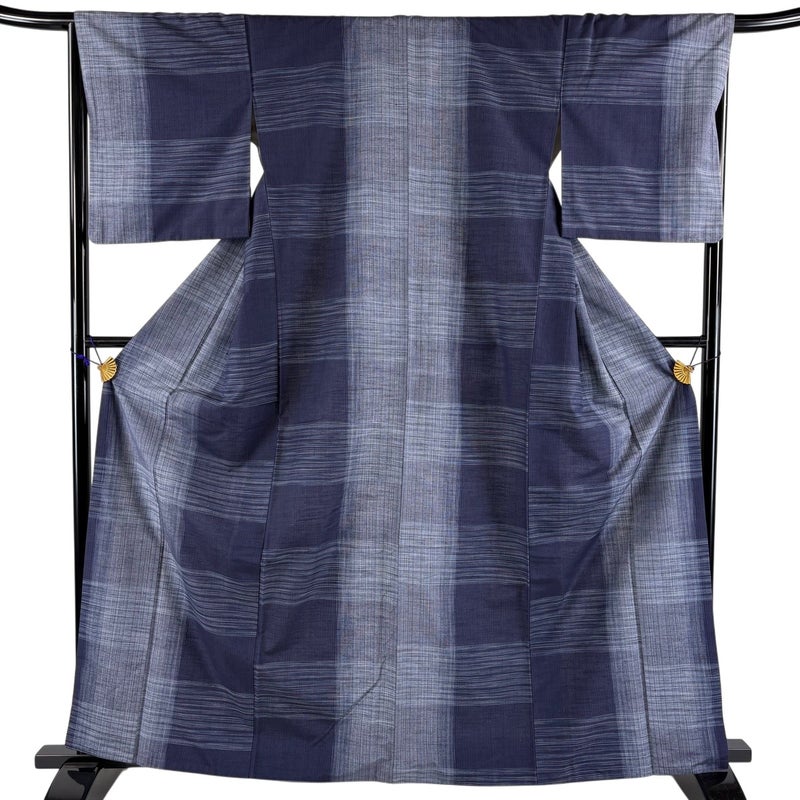 【紬】 青系 紺色 秀品 A 約160cm~約169cm 裄丈67cm-68cm (M)size 袖丈48cm 7990-9980 美品 二万以下