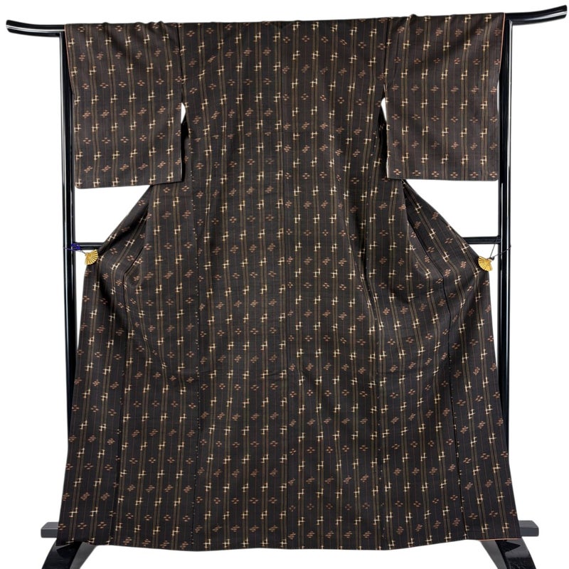 【紬】 茶系 焦茶色 逸品 B 約160cm~約169cm 裄丈66cm (M)size 袖丈50cm-60cm 30000- 五万以下