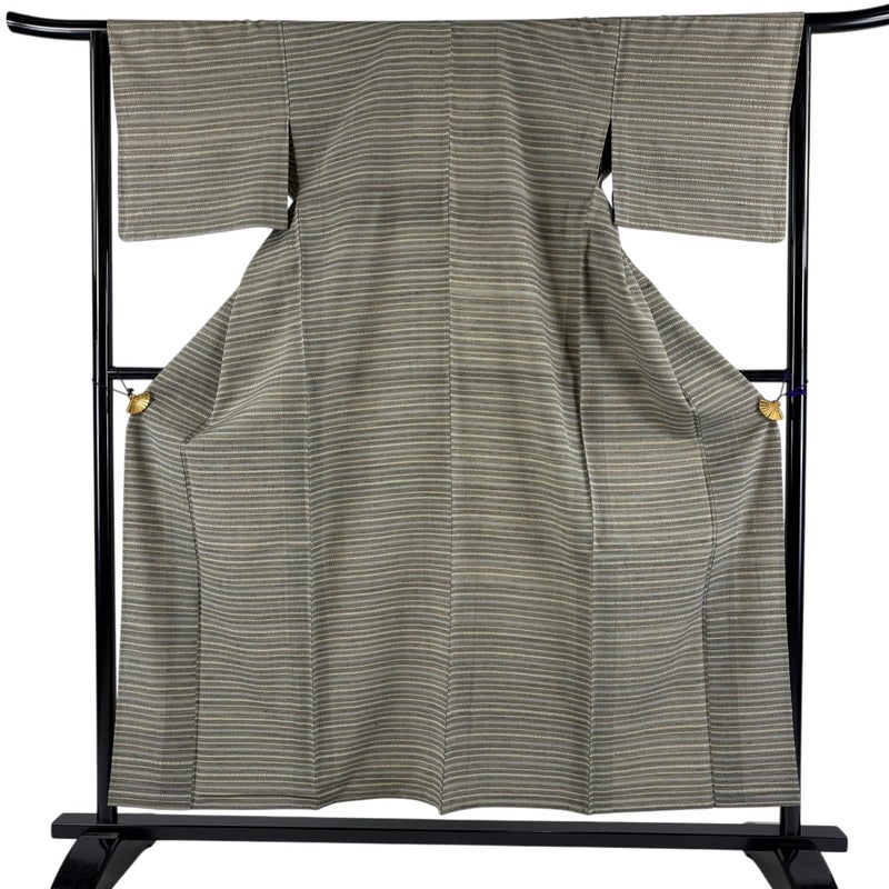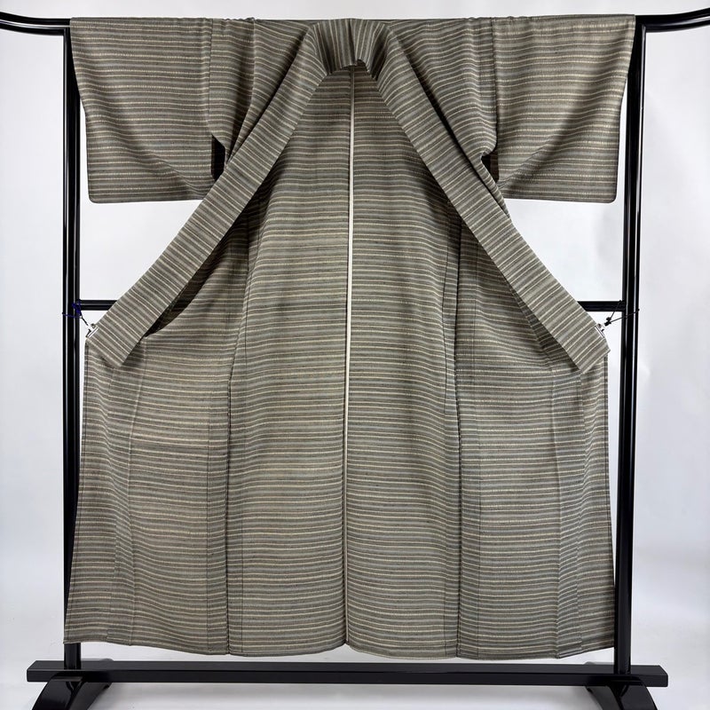 【紬】 灰色系 灰茶 逸品 A 約150cm~約159cm 裄丈63cm-64cm (M)size 袖丈46cm以下 30000- 美品 五万以下