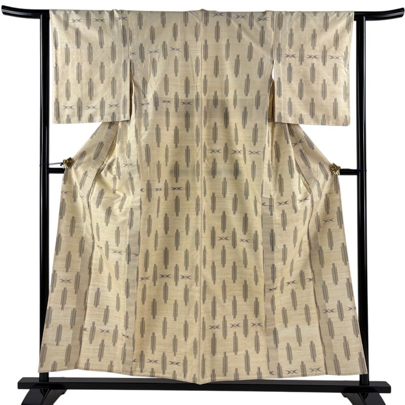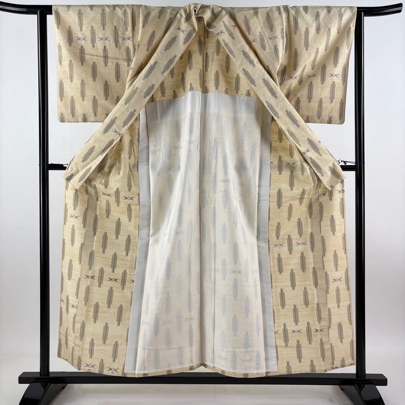 【紬】 白系 ベージュ 逸品 B 約150cm~約159cm 裄丈63cm-64cm (S)size 袖丈49cm 30000- 五万以下