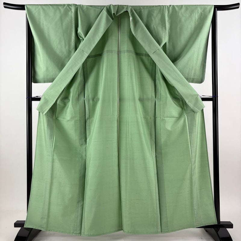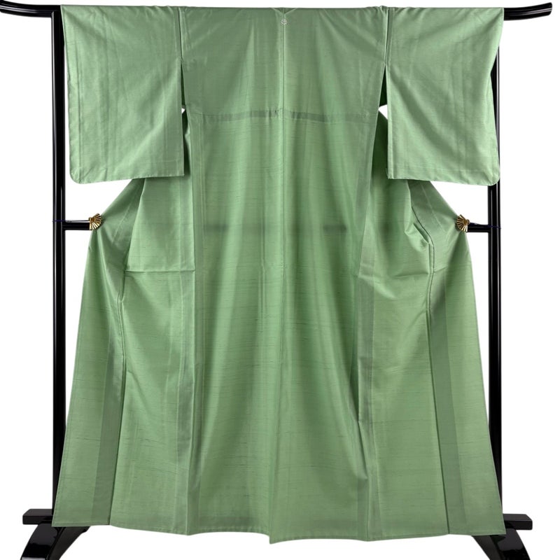 【紬】 緑系 薄緑 逸品 B 約160cm~約169cm 裄丈66cm (M)size 袖丈50cm-60cm 30000- 五万以下