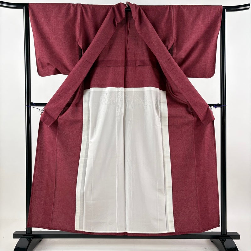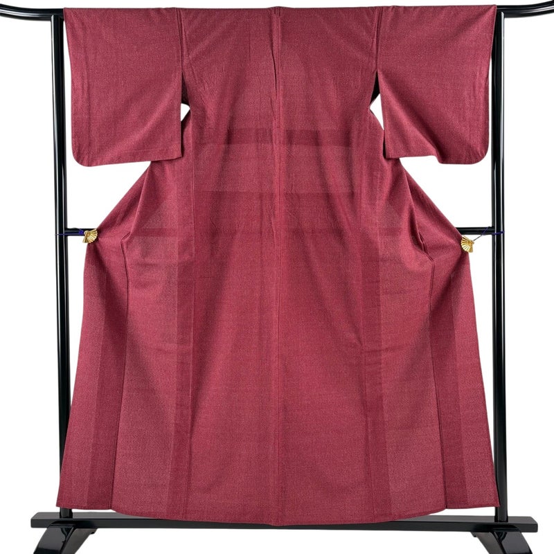 【紬】 赤系 えんじ色 逸品 B 約150cm~約159cm 裄丈63cm-64cm (M)size 袖丈48cm 30000- 五万以下