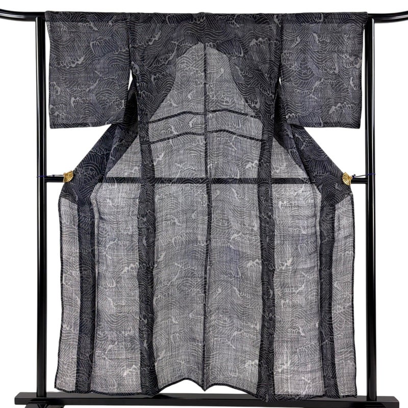 【着物ランク】逸品 【素材】正絹 【身丈】約155cm 【裄丈】約64cm 【袖丈】約47.5cm 【袖幅】約33cm 【前幅】約25.5cm 【後幅】約28.5cm 【サイズ】M 【着物仕立て】薄物 【着用時期】7~8月 【状態ランク】ランクC 【着物着用シーン】気軽なパーティー、観劇、食事会、正月、気軽なお茶会、街着