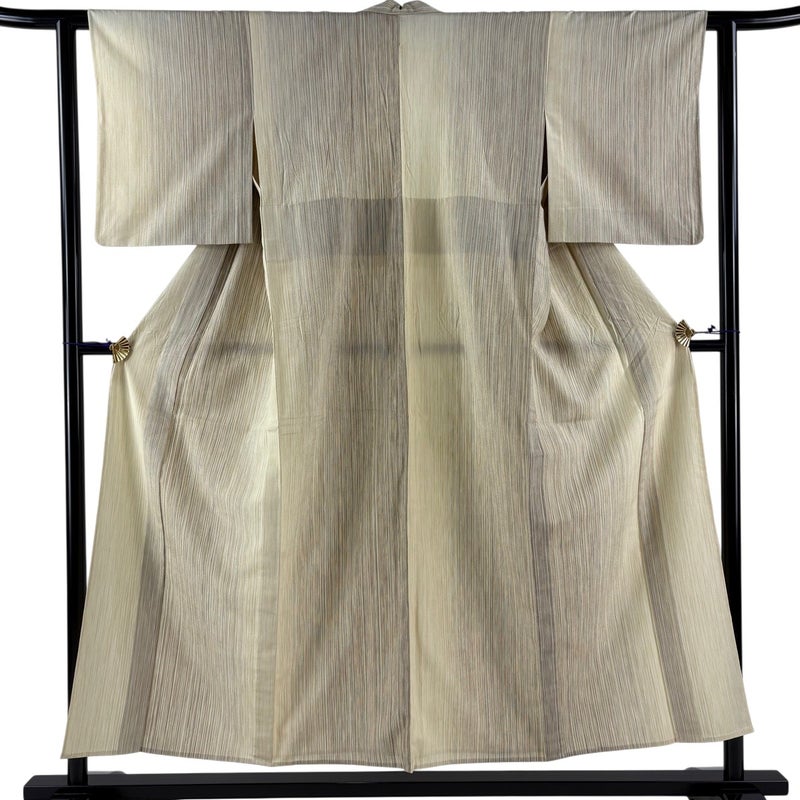 【紬】 白系 ベージュ 逸品 B 約150cm~約159cm 裄丈62cm以下 (S)size 袖丈48cm 30000- 五万以下