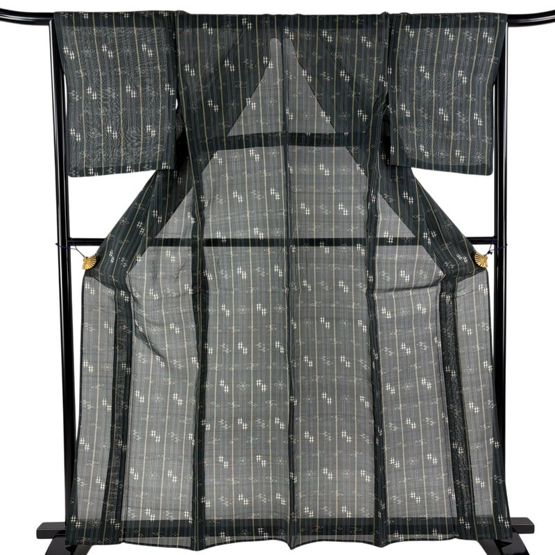 【着物ランク】秀品 【素材】正絹 【身丈】約163.5cm 【裄丈】約65.5cm 【袖丈】約49.5cm 【袖幅】約33cm 【前幅】約24.5cm 【後幅】約30.5cm 【サイズ】M 【着物仕立て】薄物 【着用時期】7~8月 【状態ランク】ランクA 【着物着用シーン】気軽なパーティー、観劇、食事会、正月、気軽なお茶会、街着