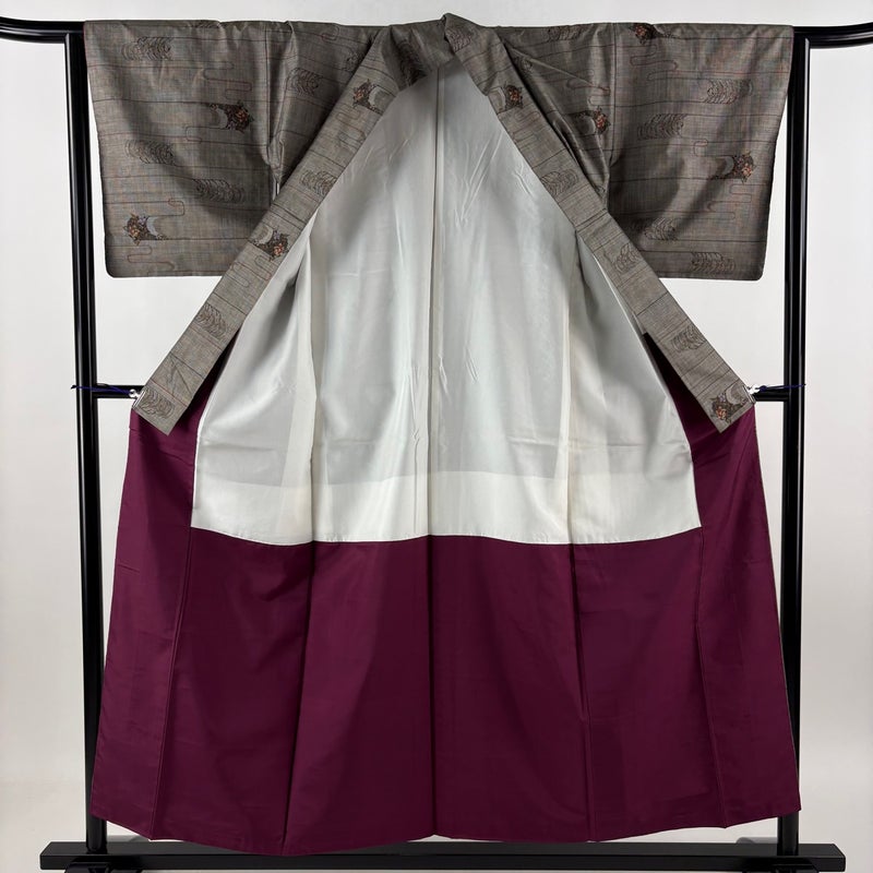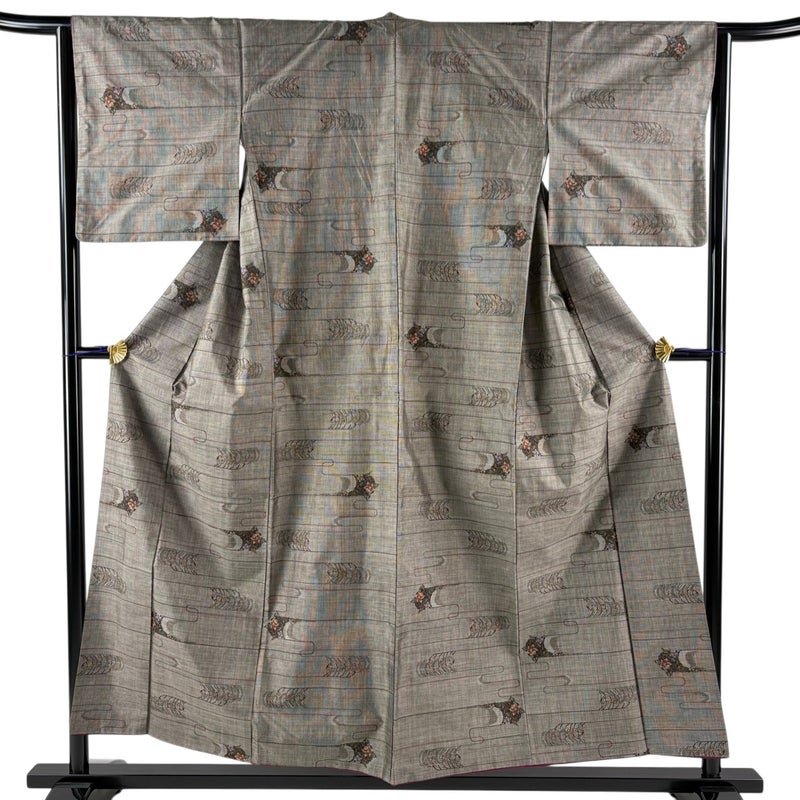 【着物ランク】秀品 【素材】正絹 【身丈】約154.5cm 【裄丈】約64cm 【袖丈】約46cm 【袖幅】約33cm 【前幅】約23cm 【後幅】約29cm 【サイズ】M 【着物仕立て】袷 【着用時期】10~5月 【状態ランク】ランクA 【着物着用シーン】気軽なパーティー、観劇、食事会、正月、気軽なお茶会、街着