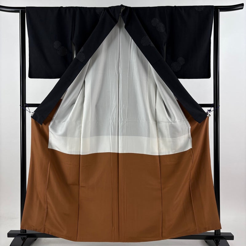 【着物ランク】秀品 【素材】正絹 【身丈】約160.5cm 【裄丈】約62.5cm 【袖丈】約48.5cm 【袖幅】約32.5cm 【前幅】約24.5cm 【後幅】約28.5cm 【サイズ】S 【着物仕立て】袷 【着用時期】10~5月 【状態ランク】ランクB 【着物着用シーン】気軽なパーティー、観劇、食事会、正月、気軽なお茶会、街着