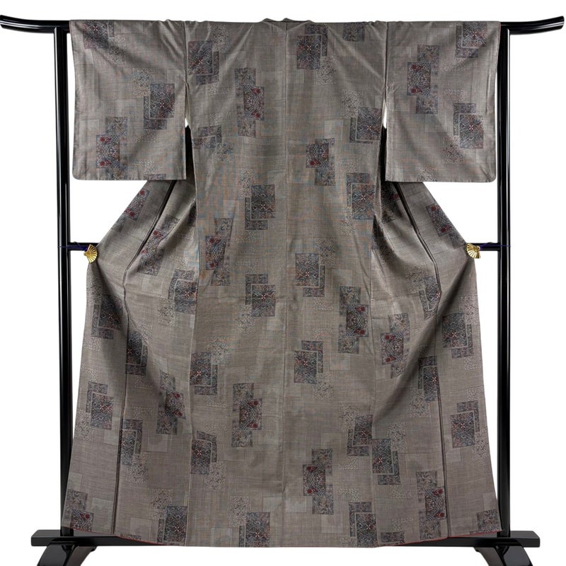 【着物ランク】秀品 【素材】正絹 【身丈】約160cm 【裄丈】約63.5cm 【袖丈】約49cm 【袖幅】約33cm 【前幅】約23cm 【後幅】約28.5cm 【サイズ】S 【着物仕立て】袷 【着用時期】10~5月 【状態ランク】ランクA 【着物着用シーン】気軽なパーティー、観劇、食事会、正月、気軽なお茶会、街着