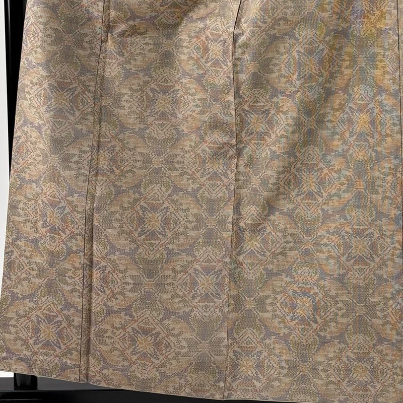 【着物ランク】秀品 【素材】正絹 【身丈】約159cm 【裄丈】約66cm 【袖丈】約51cm 【袖幅】約34cm 【前幅】約25cm 【後幅】約30cm 【サイズ】M 【着物仕立て】袷 【着用時期】10~5月 【状態ランク】ランクB 【着物着用シーン】気軽なパーティー、観劇、食事会、正月、気軽なお茶会、街着