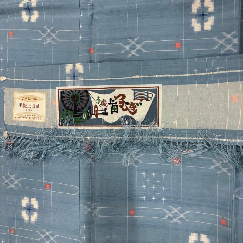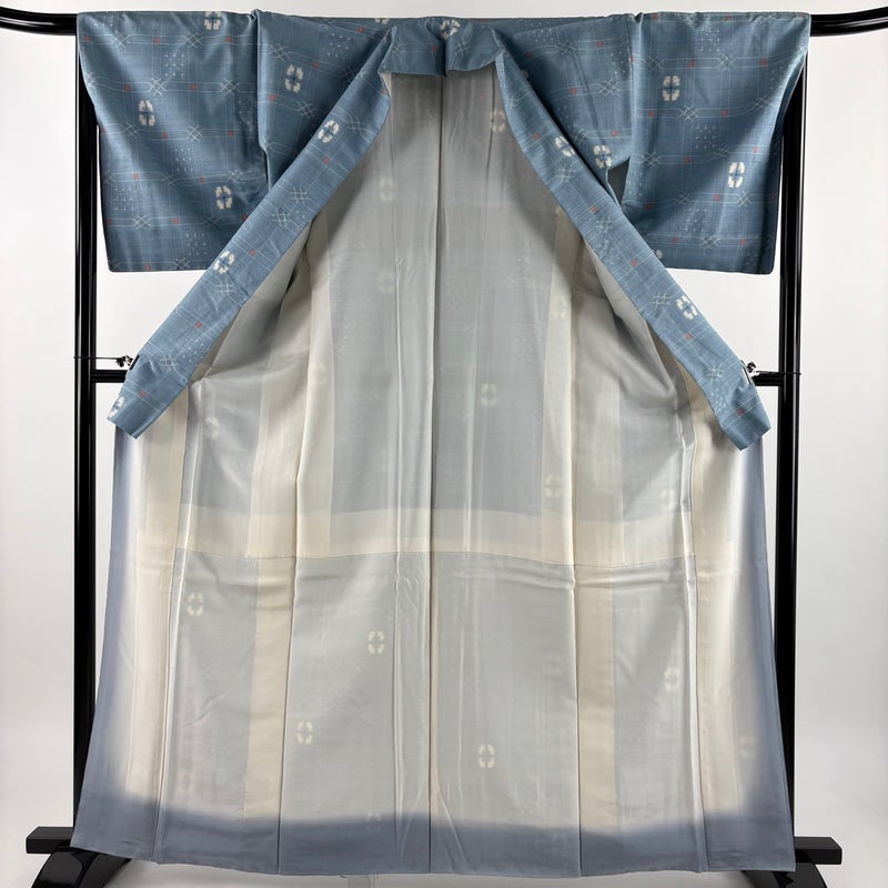 【紬】 青系 水色 秀品 B 約160cm~約169cm 裄丈67cm-68cm (M)size 袖丈48cm 4000-7980 二万以下