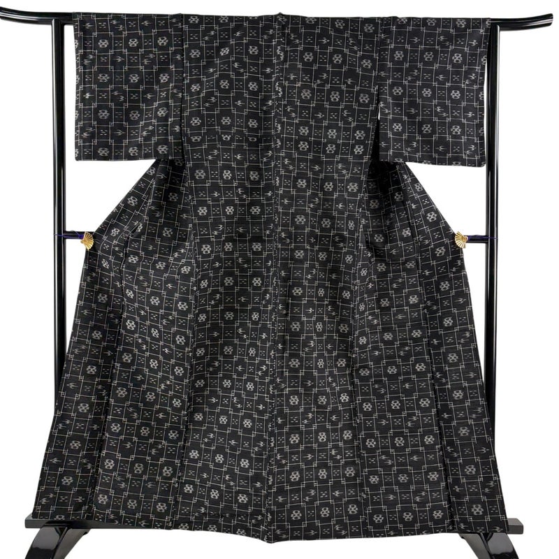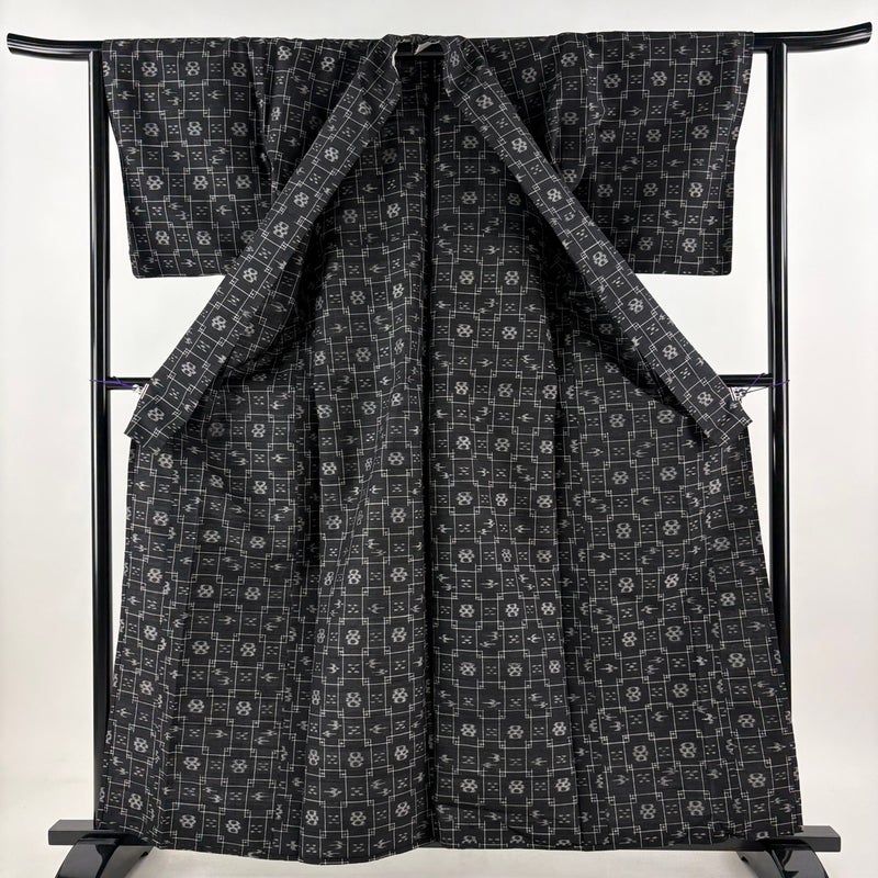 【紬】 黒系 黒 秀品 A 約160cm~約169cm 裄丈62cm以下 (S)size 袖丈46cm以下 9990-29990 美品 二万以下