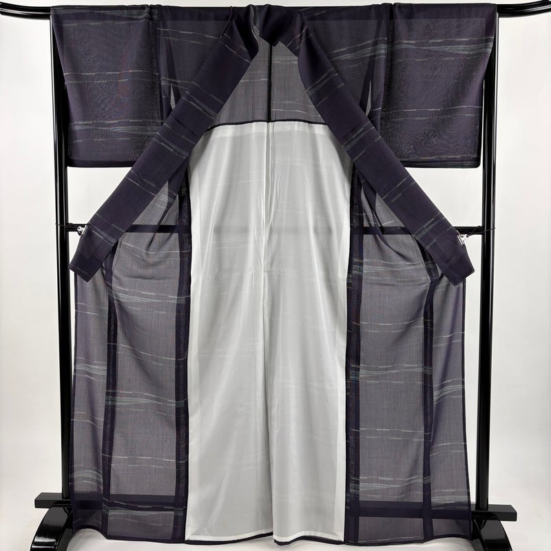 【着物ランク】秀品 【素材】化繊 【身丈】約168cm 【裄丈】約67cm 【袖丈】約49cm 【袖幅】約34cm 【前幅】約25cm 【後幅】約30.5cm 【サイズ】M 【着物仕立て】薄物 【着用時期】7~8月 【状態ランク】ランクC 【着物着用シーン】気軽なパーティー、観劇、食事会、正月、気軽なお茶会、街着