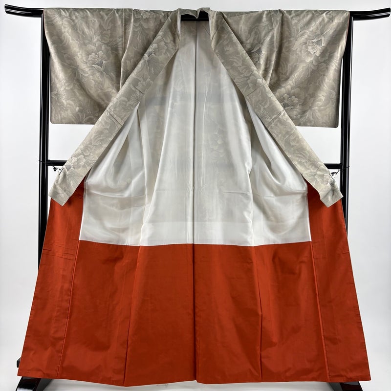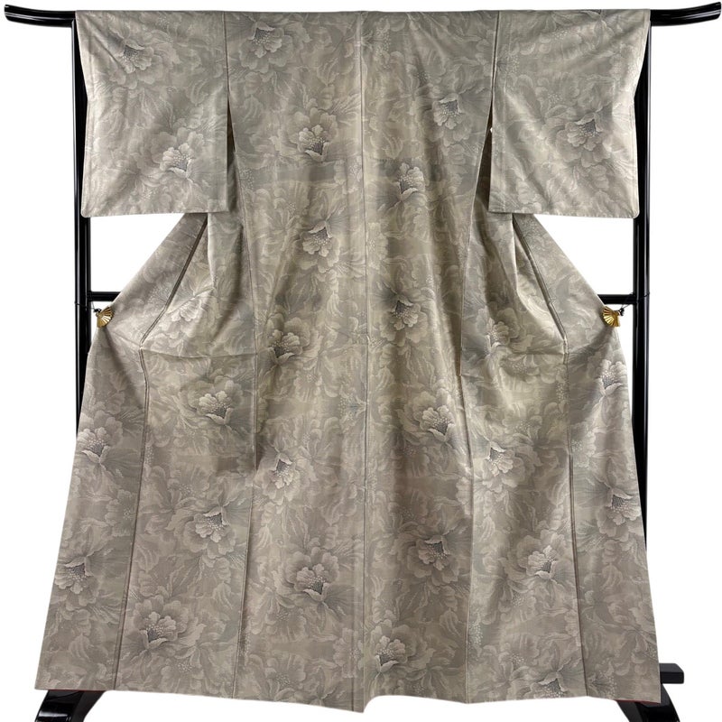 【着物ランク】秀品 【素材】正絹 【身丈】約166cm 【裄丈】約66cm 【袖丈】約50.5cm 【袖幅】約34cm 【前幅】約28cm 【後幅】約31cm 【サイズ】M 【着物仕立て】袷 【着用時期】10~5月 【状態ランク】ランクC 【着物着用シーン】気軽なパーティー、観劇、食事会、正月、気軽なお茶会、街着