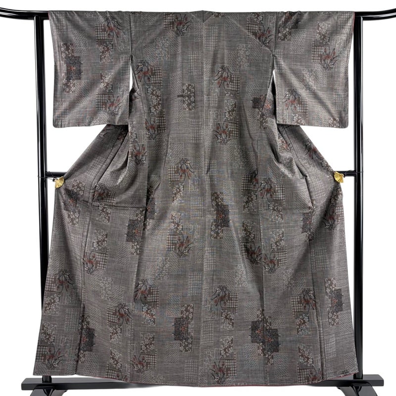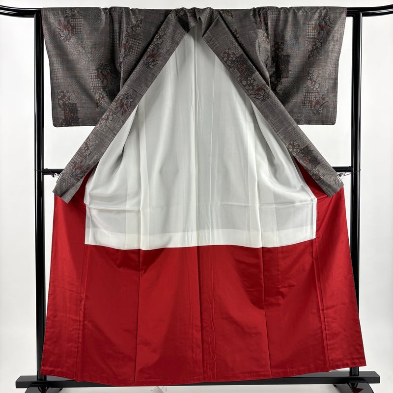 【着物ランク】秀品 【素材】正絹 【身丈】約159cm 【裄丈】約62.5cm 【袖丈】約48.5cm 【袖幅】約32.5cm 【前幅】約25cm 【後幅】約28.5cm 【サイズ】S 【着物仕立て】袷 【着用時期】10~5月 【状態ランク】ランクA 【着物着用シーン】気軽なパーティー、観劇、食事会、正月、気軽なお茶会、街着