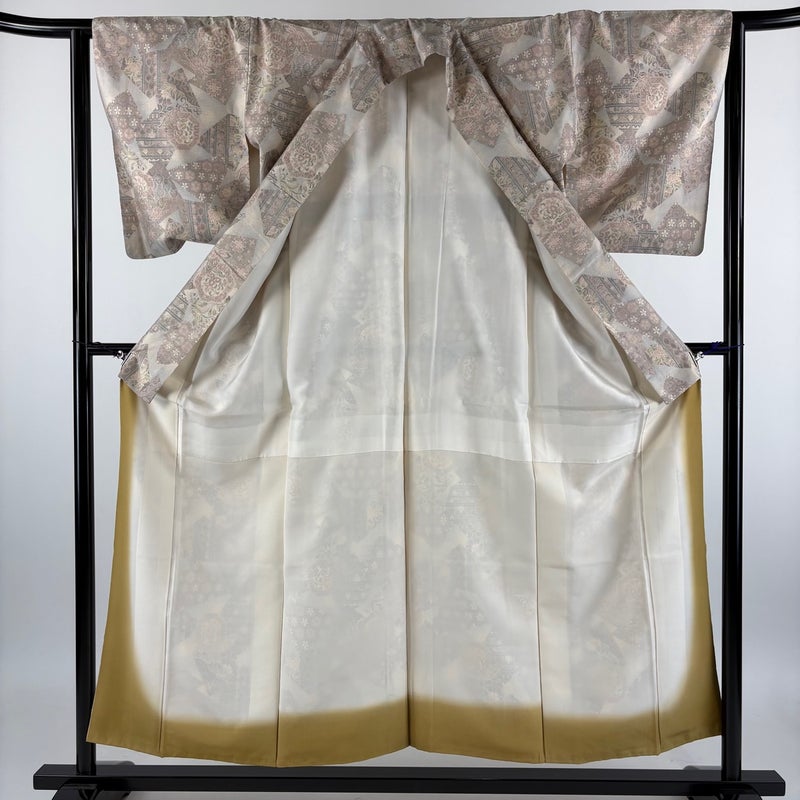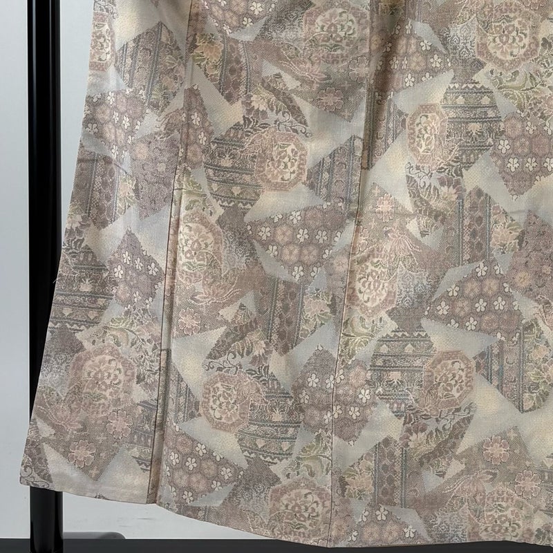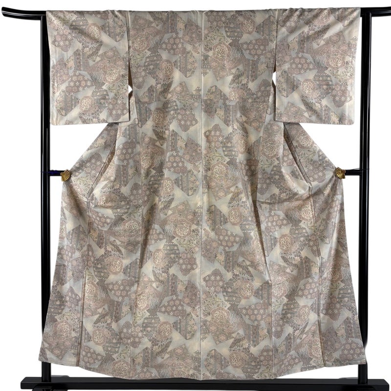【着物ランク】秀品 【素材】正絹 【身丈】約155cm 【裄丈】約64.5cm 【袖丈】約49cm 【袖幅】約33cm 【前幅】約23.5cm 【後幅】約29.5cm 【サイズ】M 【着物仕立て】袷 【着用時期】10~5月 【状態ランク】ランクA 【着物着用シーン】気軽なパーティー、観劇、食事会、正月、気軽なお茶会、街着
