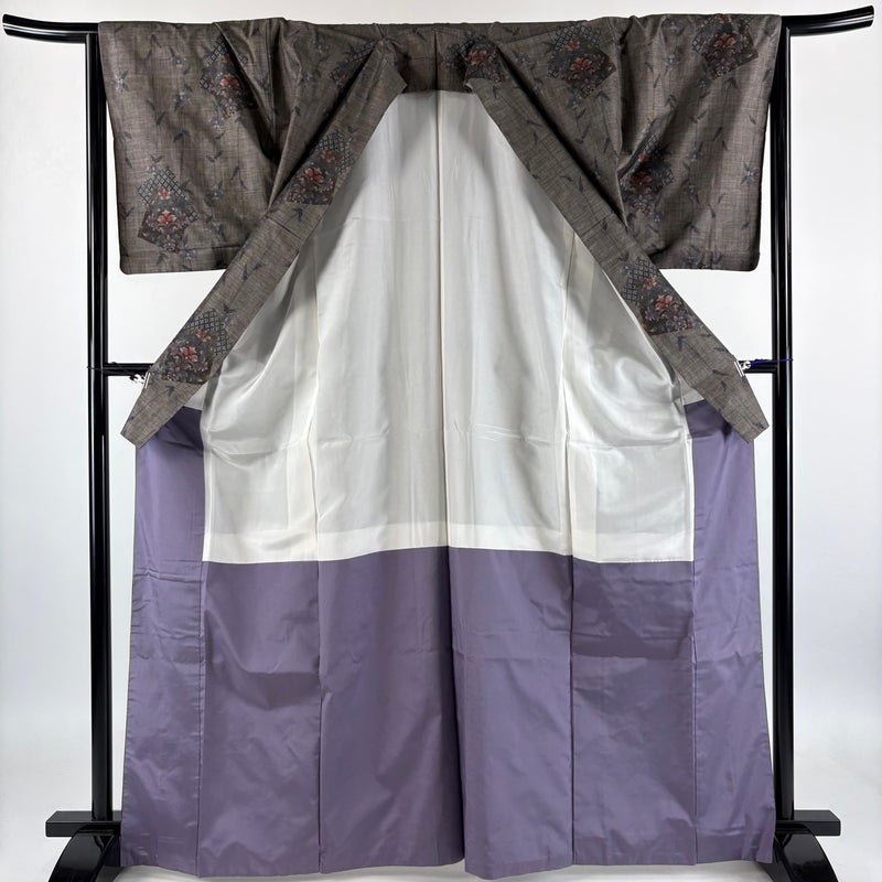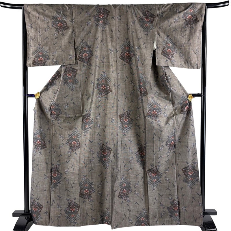 【着物ランク】秀品 【素材】正絹 【身丈】約166cm 【裄丈】約66.5cm 【袖丈】約49.5cm 【袖幅】約34.5cm 【前幅】約23.5cm 【後幅】約30cm 【サイズ】M 【着物仕立て】袷 【着用時期】10~5月 【状態ランク】ランクA 【着物着用シーン】気軽なパーティー、観劇、食事会、正月、気軽なお茶会、街着