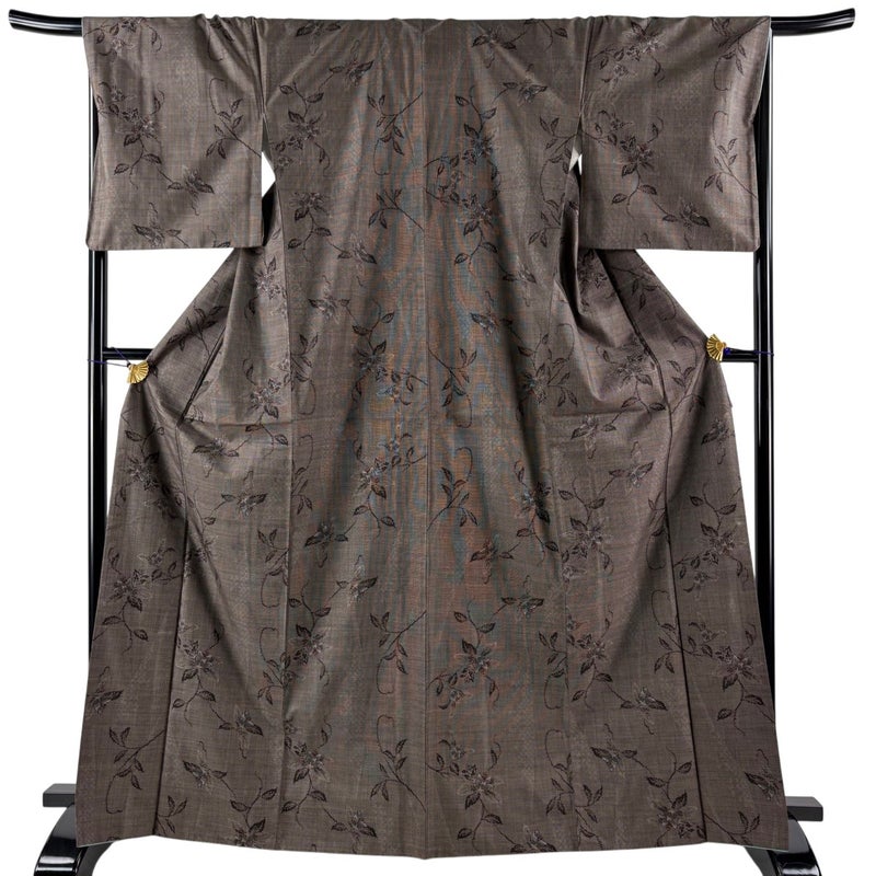 【着物ランク】秀品 【素材】正絹 【身丈】約167cm 【裄丈】約69.5cm 【袖丈】約49cm 【袖幅】約35cm 【前幅】約24.5cm 【後幅】約29.5cm 【サイズ】L 【着物仕立て】袷 【着用時期】10~5月 【状態ランク】ランクB 【着物着用シーン】気軽なパーティー、観劇、食事会、正月、気軽なお茶会、街着