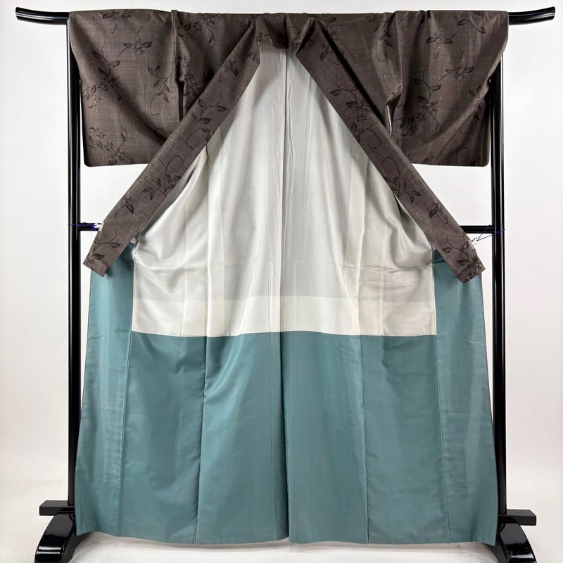【紬】 茶系 焦茶色 秀品 B 約160cm~約169cm 裄丈69cm以上 (L)size 袖丈49cm 4000-7980 二万以下