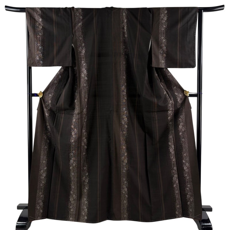 【紬】 茶系 焦茶色 秀品 B 約160cm~約169cm 裄丈66cm (M)size 袖丈48cm 4000-7980 二万以下