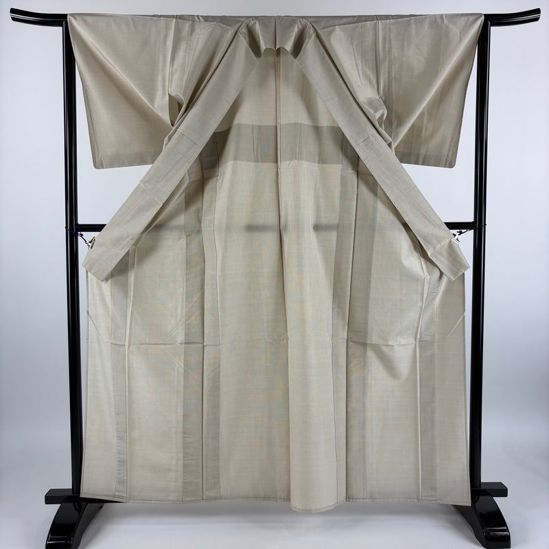 【紬】 白系 ベージュ 秀品 A 約160cm~約169cm 裄丈63cm-64cm (M)size 袖丈49cm 9990-29990 美品 二万以下