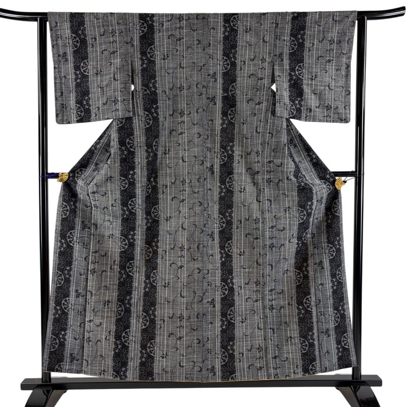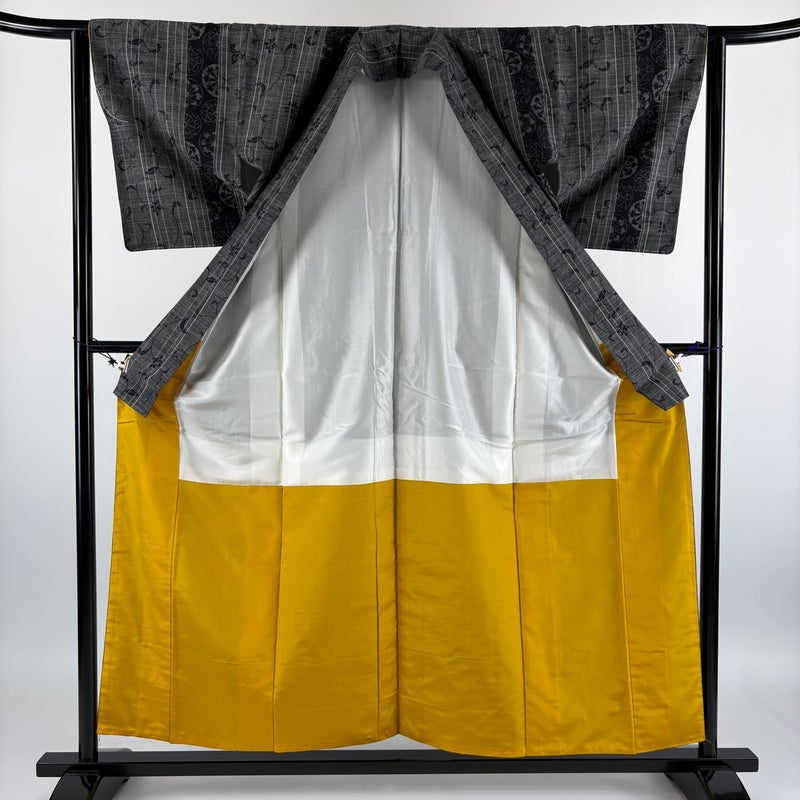 【紬】 灰色系 黒灰 秀品 A 約150cm~約159cm 裄丈62cm以下 (S)size 袖丈47cm 7990-9980 美品 二万以下
