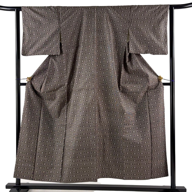 【着物ランク】秀品 【素材】正絹 【身丈】約153cm 【裄丈】約62cm 【袖丈】約45cm 【袖幅】約33cm 【前幅】約24cm 【後幅】約31cm 【サイズ】S 【着物仕立て】袷 【着用時期】10~5月 【身丈2】約79cm 【裄丈2】約62.5cm 【状態ランク】ランクB 【着物着用シーン】気軽なパーティー、観劇、食事会、正月、気軽なお茶会、街着