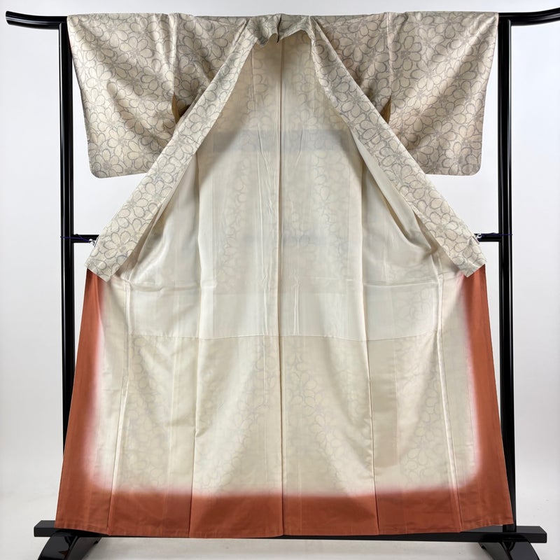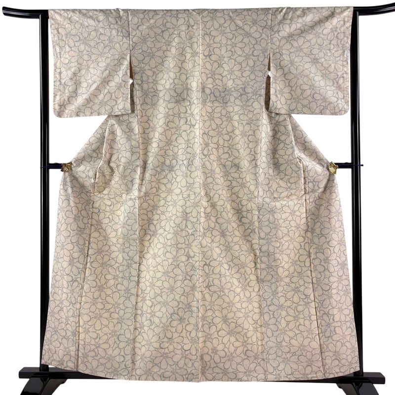 【紬】 白系 ベージュ 秀品 A 約150cm~約159cm 裄丈63cm-64cm (S)size 袖丈49cm 7990-9980 美品 二万以下
