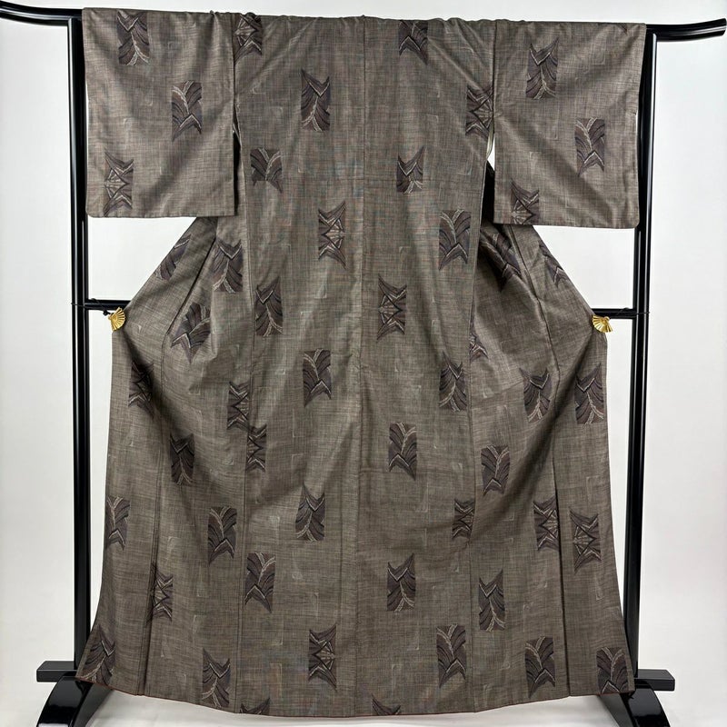 【紬】 茶系 焦茶色 秀品 B 約160cm~約169cm 裄丈66cm (M)size 袖丈48cm 4000-7980 二万以下