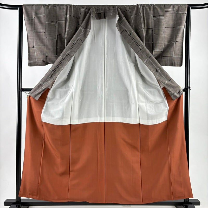 【紬】 茶系 茶色 秀品 A 約150cm~約159cm 裄丈63cm-64cm (S)size 袖丈49cm 7990-9980 美品 二万以下