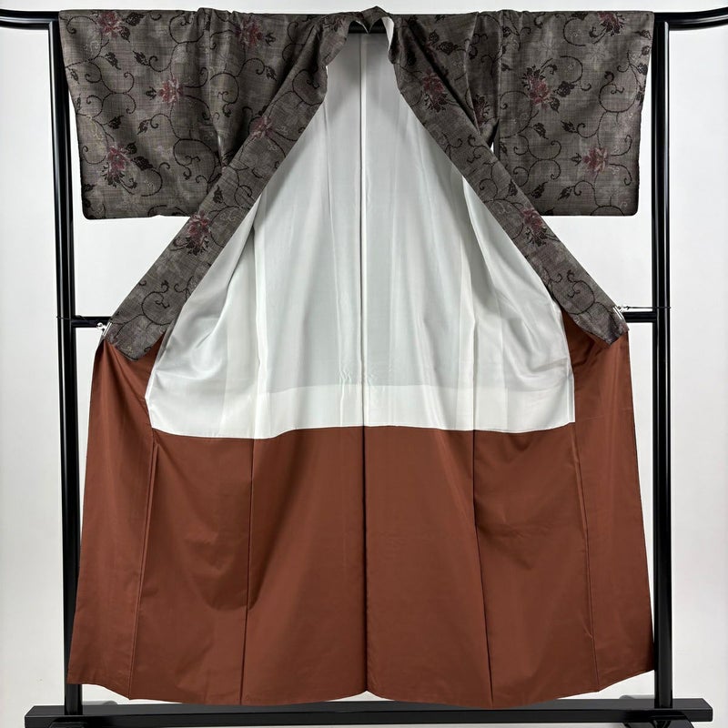 【紬】 茶系 焦茶色 秀品 A 約150cm~約159cm 裄丈63cm-64cm (M)size 袖丈46cm以下 7990-9980 美品 二万以下