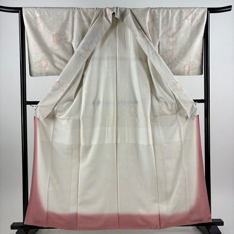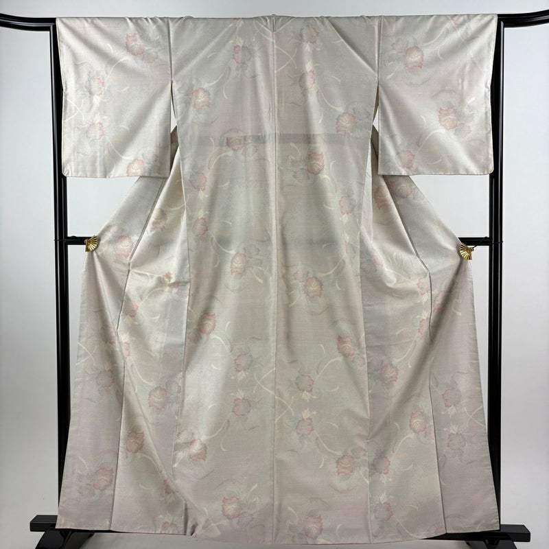 【着物ランク】秀品 【素材】正絹 【身丈】約163cm 【裄丈】約65.5cm 【袖丈】約49cm 【袖幅】約34.5cm 【前幅】約22.5cm 【後幅】約30.5cm 【サイズ】M 【着物仕立て】袷 【着用時期】10~5月 【状態ランク】ランクA 【着物着用シーン】気軽なパーティー、観劇、食事会、正月、気軽なお茶会、街着