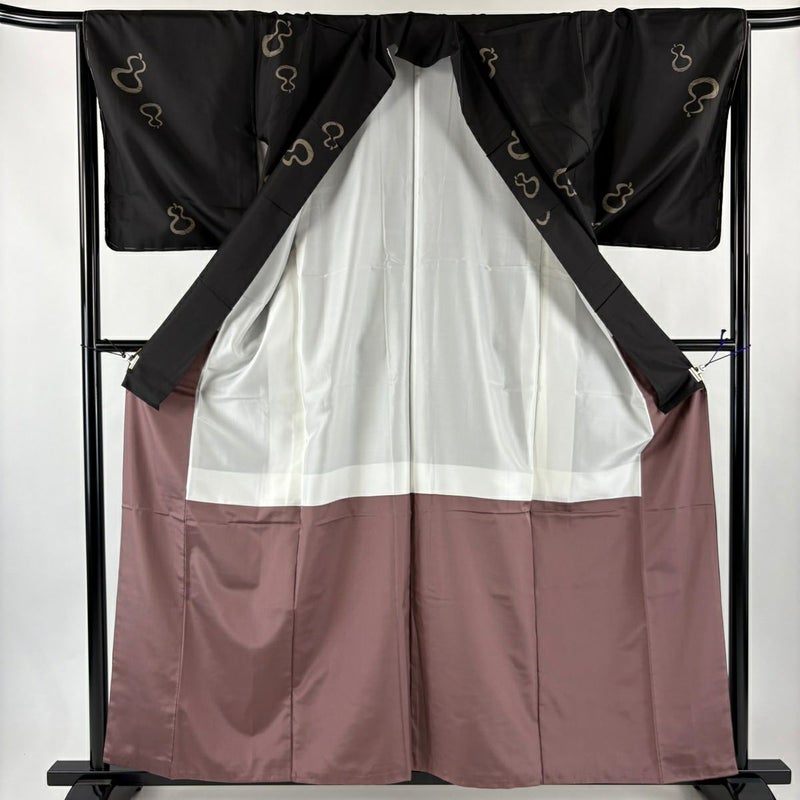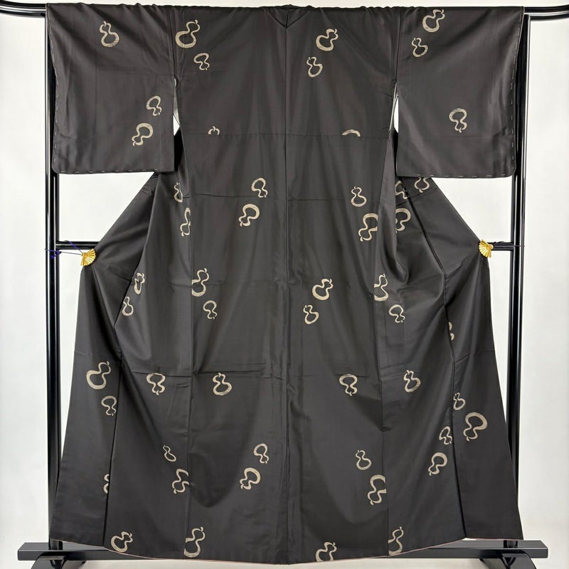 【紬】 黒系 黒 秀品 A 約150cm~約159cm 裄丈65cm (M)size 袖丈49cm 7990-9980 美品 二万以下