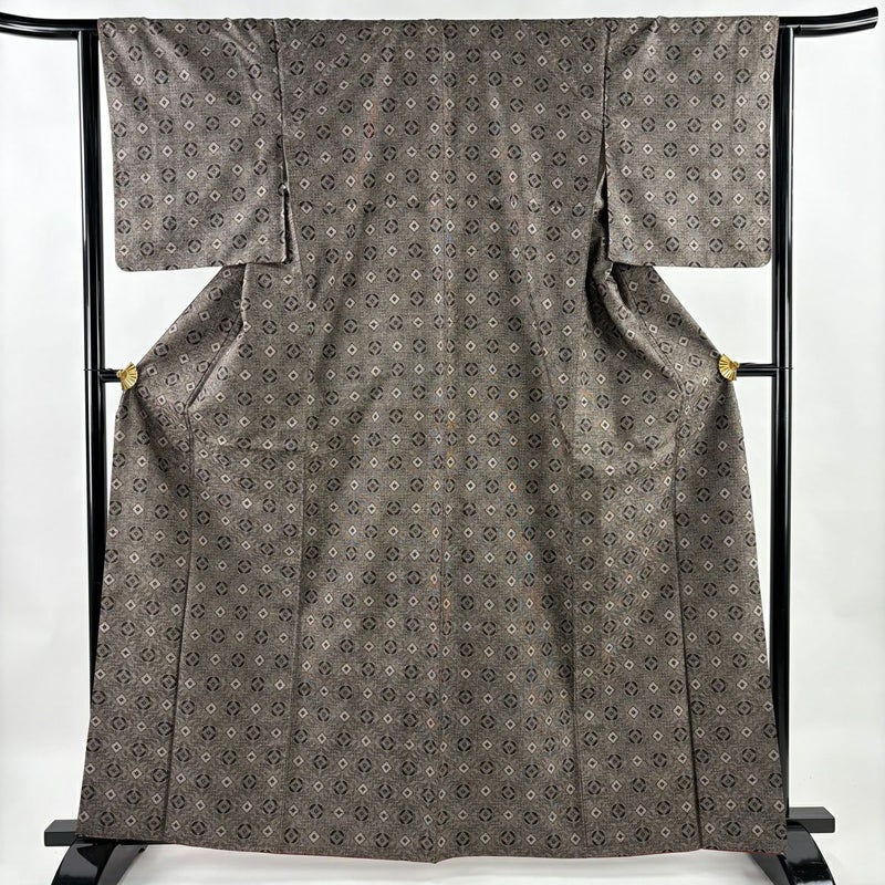 【紬】 茶系 焦茶色 秀品 C 約160cm~約169cm 裄丈63cm-64cm (S)size 袖丈49cm 4000-7980 二万以下