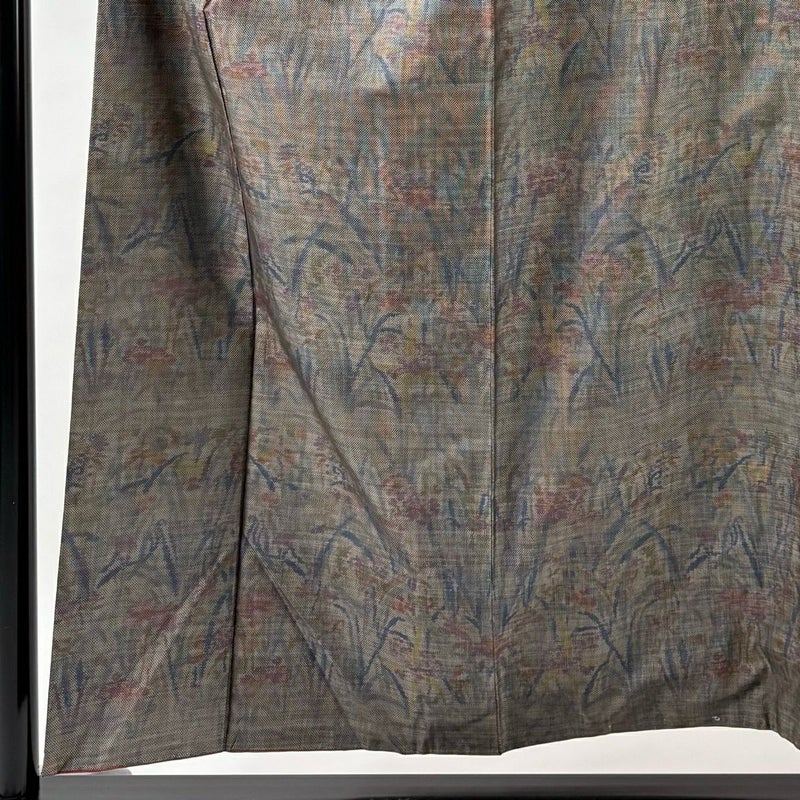 【着物ランク】秀品 【素材】正絹 【身丈】約157cm 【裄丈】約63cm 【袖丈】約48cm 【袖幅】約33.5cm 【前幅】約24cm 【後幅】約30.5cm 【サイズ】S 【着物仕立て】袷 【着用時期】10~5月 【状態ランク】ランクB 【着物着用シーン】気軽なパーティー、観劇、食事会、正月、気軽なお茶会、街着