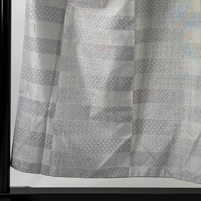 【着物ランク】秀品 【素材】正絹 【身丈】約153.5cm 【裄丈】約66cm 【袖丈】約47cm 【袖幅】約35cm 【前幅】約27cm 【後幅】約30.5cm 【サイズ】M 【着物仕立て】袷 【着用時期】10~5月 【状態ランク】ランクC 【着物着用シーン】気軽なパーティー、観劇、食事会、正月、気軽なお茶会、街着