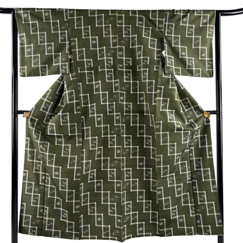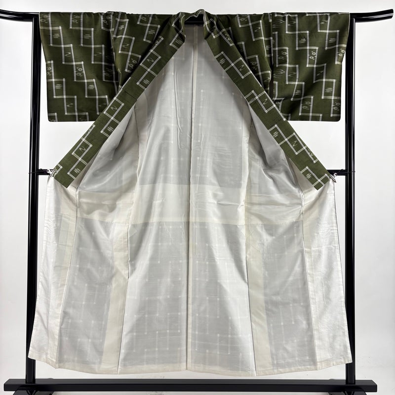【紬】 緑系 鶯色 秀品 C 約150cm~約159cm 裄丈63cm-64cm (M)size 袖丈46cm以下 4000-7980 二万以下