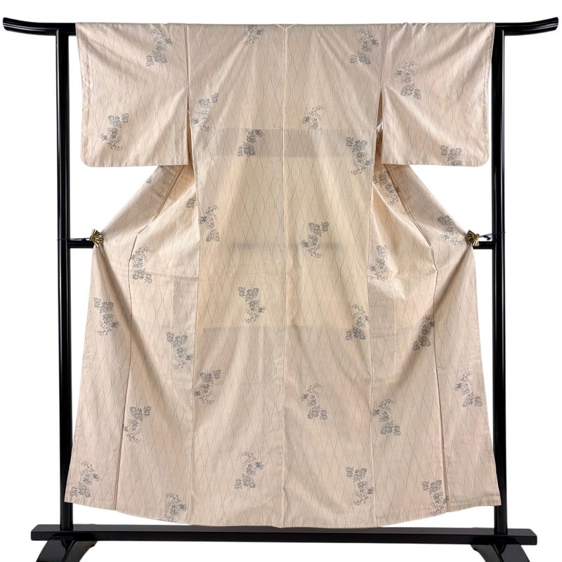 【紬】 白系 ベージュ 秀品 B 約150cm~約159cm 裄丈62cm以下 (S)size 袖丈46cm以下 4000-7980 二万以下