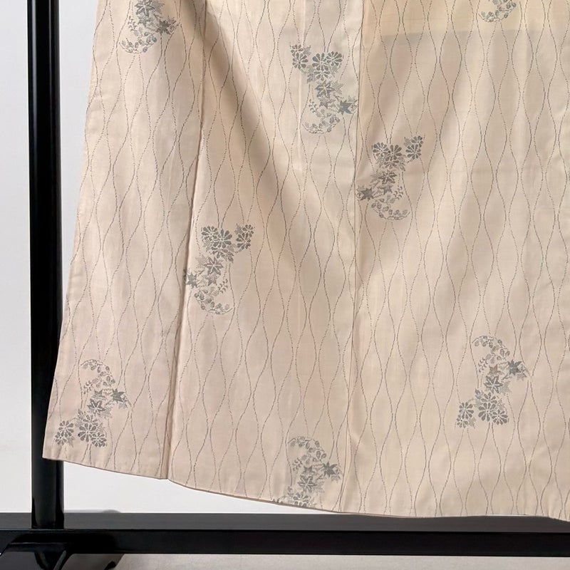 【着物ランク】秀品 【素材】正絹 【身丈】約155.5cm 【裄丈】約62cm 【袖丈】約45.5cm 【袖幅】約32.5cm 【前幅】約23cm 【後幅】約28cm 【サイズ】S 【着物仕立て】袷 【着用時期】10~5月 【状態ランク】ランクB 【着物着用シーン】気軽なパーティー、観劇、食事会、正月、気軽なお茶会、街着