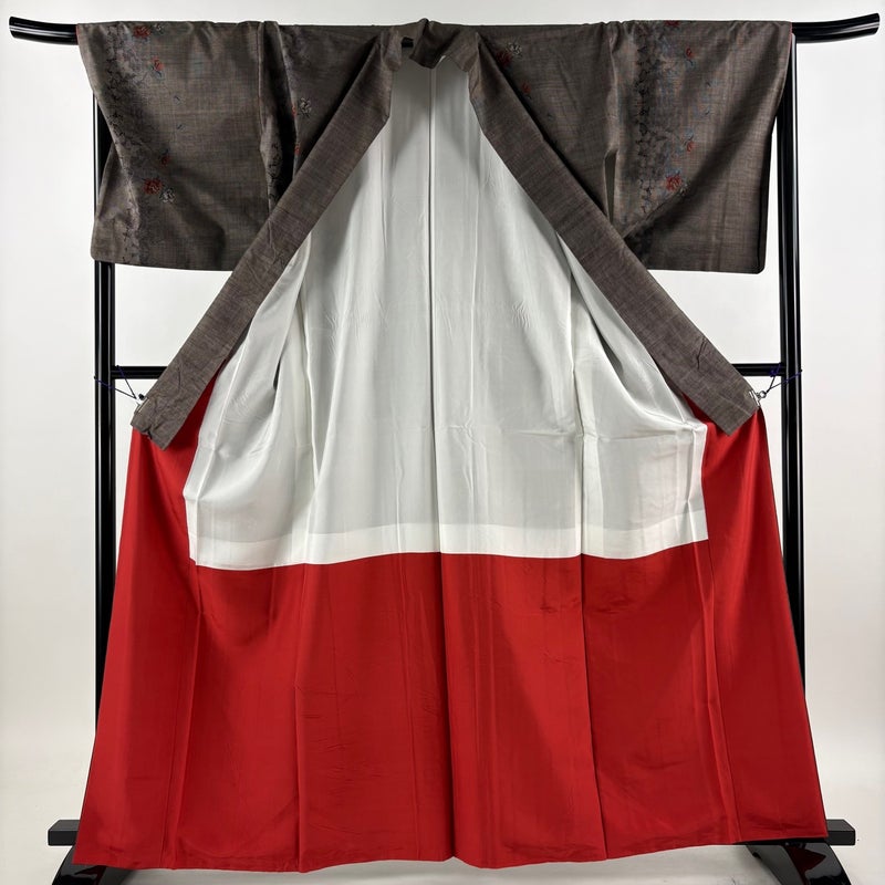 【紬】 茶系 焦茶色 秀品 C 約160cm~約169cm 裄丈69cm以上 (L)size 袖丈48cm 4000-7980 二万以下