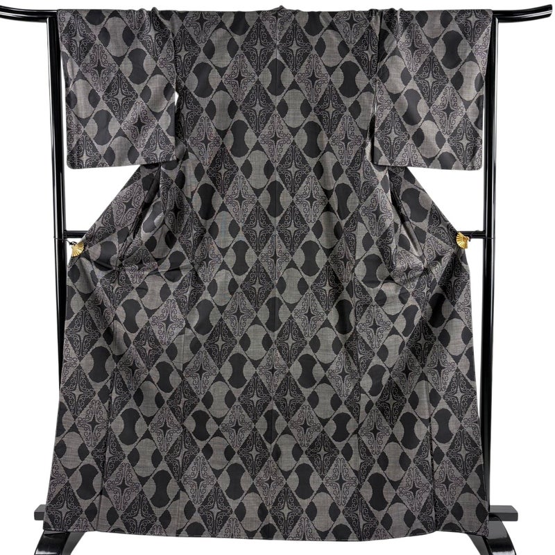【着物ランク】秀品 【素材】正絹 【身丈】約166cm 【裄丈】約65.5cm 【袖丈】約48cm 【袖幅】約35cm 【前幅】約25cm 【後幅】約28.5cm 【サイズ】M 【着物仕立て】袷 【着用時期】10~5月 【状態ランク】ランクA 【着物着用シーン】気軽なパーティー、観劇、食事会、正月、気軽なお茶会、街着