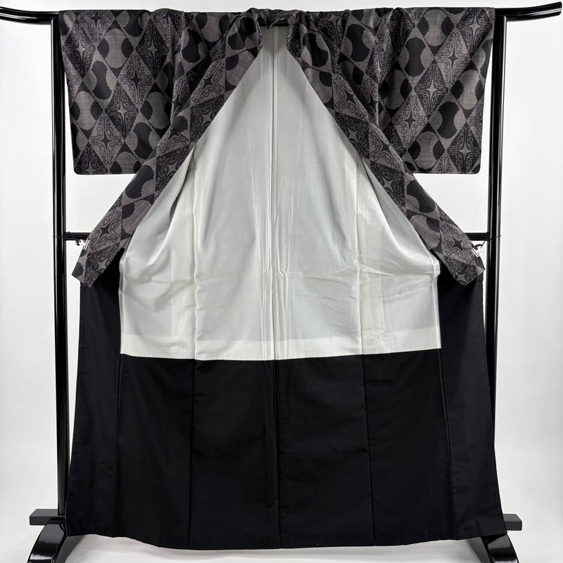 【紬】 灰色系 黒灰 秀品 A 約160cm~約169cm 裄丈65cm (M)size 袖丈48cm 7990-9980 美品 二万以下