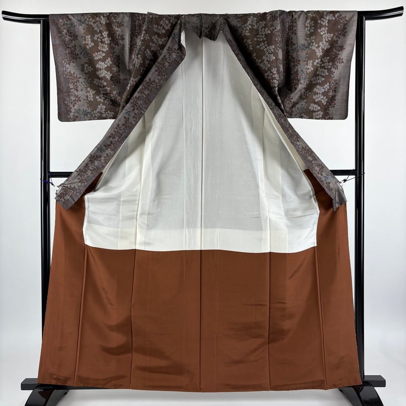 【紬】 灰色系 灰茶 秀品 A 約160cm~約169cm 裄丈63cm-64cm (M)size 袖丈46cm以下 7990-9980 美品 二万以下