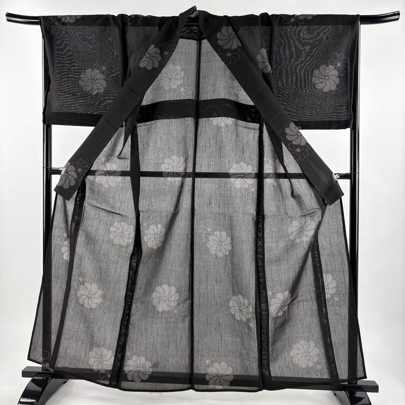 【紬】 黒系 墨色 秀品 A 約160cm~約169cm 裄丈69cm以上 (L)size 袖丈49cm 9990-29990 美品 二万以下