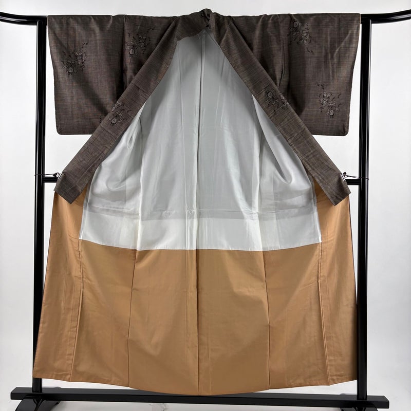 【紬】 茶系 焦茶色 秀品 A 約150cm~約159cm 裄丈62cm以下 (S)size 袖丈49cm 7990-9980 美品 二万以下