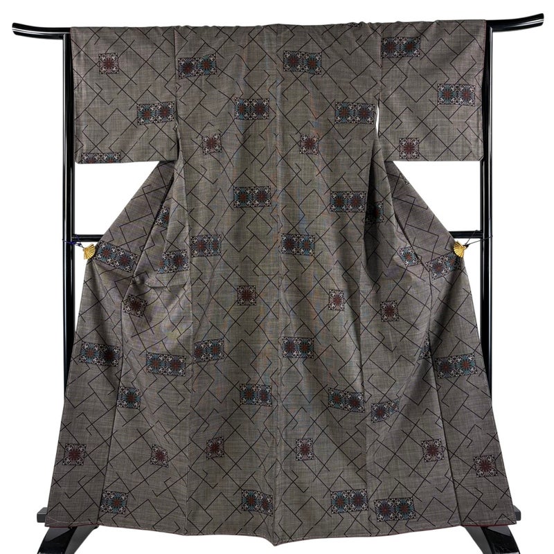 【着物ランク】秀品 【素材】正絹 【身丈】約164.5cm 【裄丈】約65.5cm 【袖丈】約45cm 【袖幅】約32.5cm 【前幅】約28cm 【後幅】約32.5cm 【サイズ】M 【着物仕立て】袷 【着用時期】10~5月 【状態ランク】ランクA 【着物着用シーン】気軽なパーティー、観劇、食事会、正月、気軽なお茶会、街着