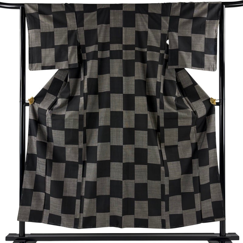 【紬】 黒系 墨色 秀品 B 約150cm~約159cm 裄丈63cm-64cm (S)size 袖丈47cm 4000-7980 二万以下