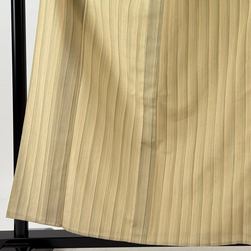 【着物ランク】秀品 【素材】正絹 【身丈】約158.5cm 【裄丈】約63cm 【袖丈】約49cm 【袖幅】約32.5cm 【前幅】約24.5cm 【後幅】約29cm 【サイズ】S 【着物仕立て】単衣 【着用時期】6/9月 【状態ランク】ランクC 【着物着用シーン】気軽なパーティー、観劇、食事会、正月、気軽なお茶会、街着