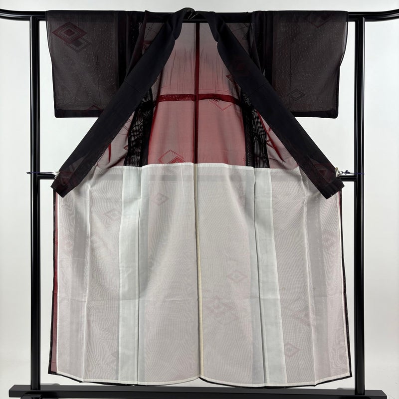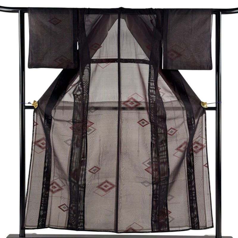 【着物ランク】秀品 【素材】正絹 【身丈】約154cm 【裄丈】約61cm 【袖丈】約43cm 【袖幅】約32cm 【前幅】約22cm 【後幅】約28cm 【サイズ】S 【着物仕立て】薄物 【着用時期】7~8月 【状態ランク】ランクC 【着物着用シーン】気軽なパーティー、観劇、食事会、正月、気軽なお茶会、街着