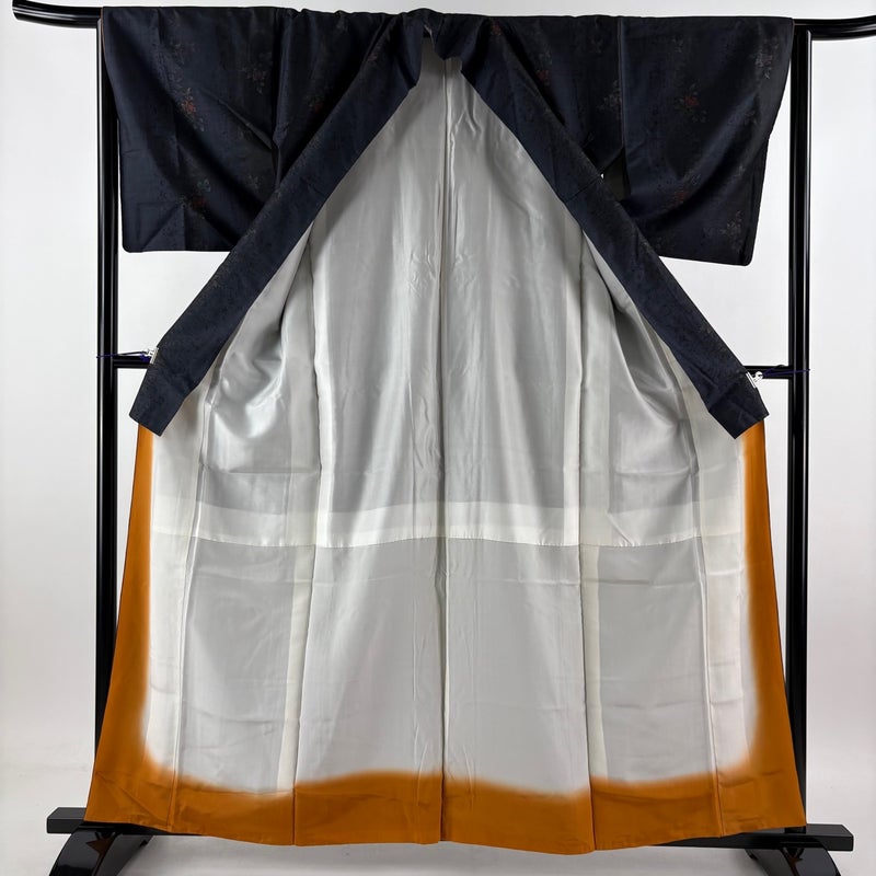 【着物ランク】秀品 【素材】正絹 【身丈】約160cm 【裄丈】約65cm 【袖丈】約47cm 【袖幅】約32.5cm 【前幅】約24.5cm 【後幅】約30cm 【サイズ】M 【着物仕立て】袷 【着用時期】10~5月 【状態ランク】ランクB 【着物着用シーン】気軽なパーティー、観劇、食事会、正月、気軽なお茶会、街着