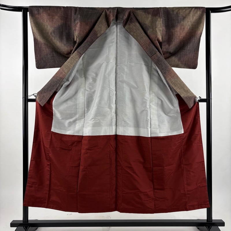 普段着やおしゃれ着として人気の紬でございます。 元々は日常着として着用していたので、その土地の風土に合った様々な種類がある素敵な一品です。 ※身丈・裄丈の縫込みの長さは測っておりません。 両袖口中に薄汚れがございます。 裏地所々にシワ、衿裏と胴裏に下糸の変色がございます。 リユース品としては目立った染み傷なく、状態の良いお品でございます。 ※なお、厳しく商品の状態確認を行っておりますが、記載の汚れ以外にも見落とし箇所がある可能性がある旨ご了承いただけますと幸いです。 沢山の商品の中からご覧いただき誠にありがとうございます。